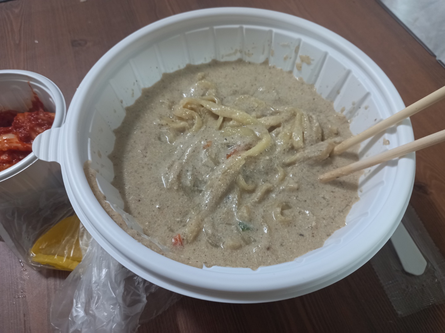이곳은 면을 따로 익혀서 육수랑 별도로 주는 게 아니라 들깨 육수에 면을 넣고 익힌 뒤에