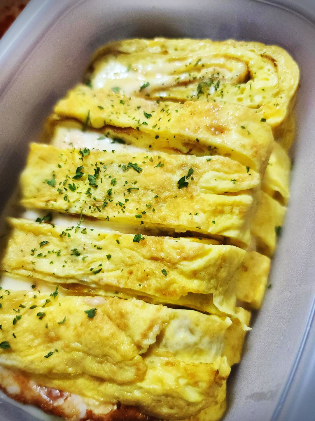 명란 치즈 계란말이인데 명란젓과 치즈가 듬뿍 들어가 있어서 케첩 없이 먹는 것을 추천합니다.