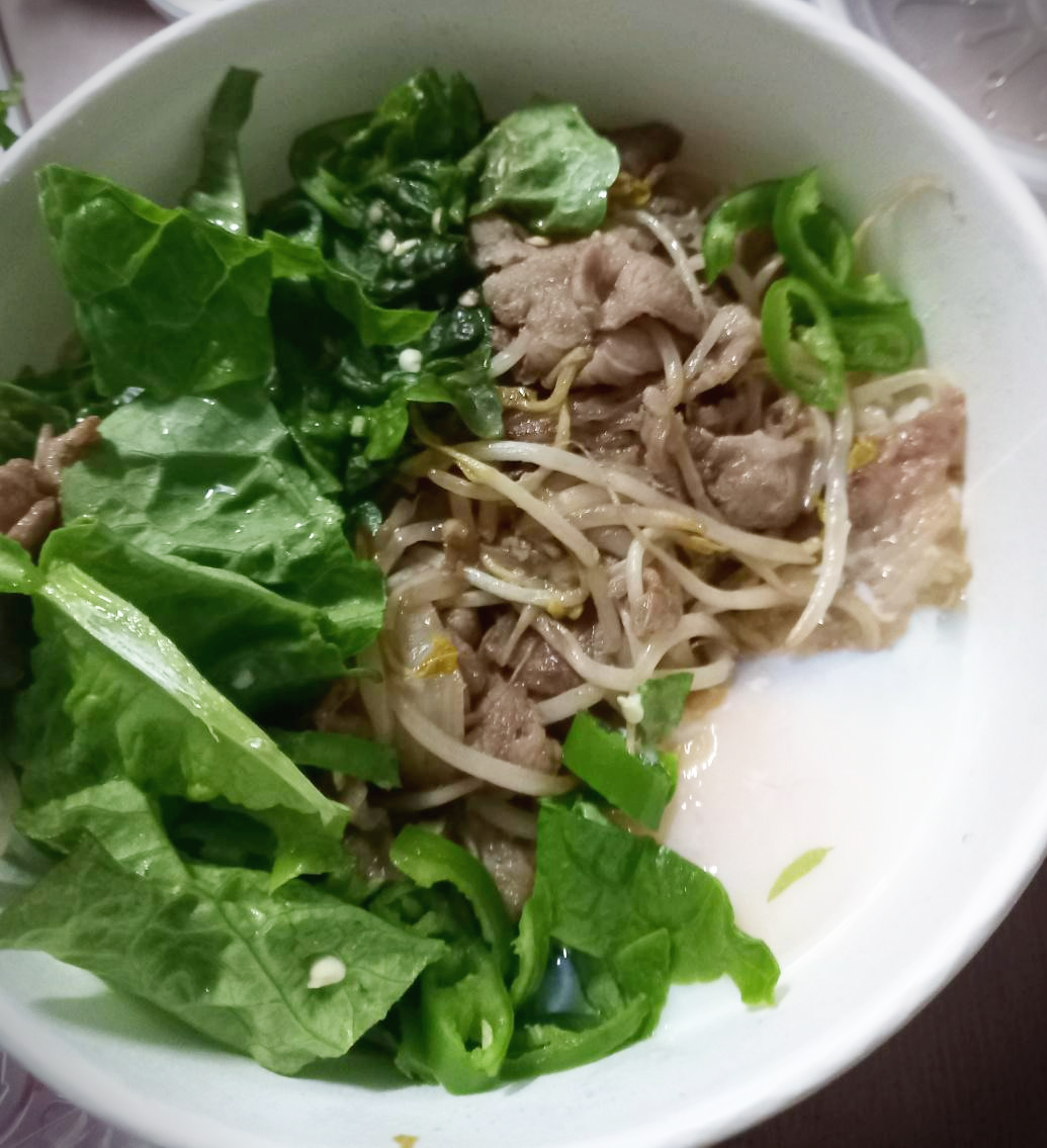숙주의 식감도 아삭하고 우삼겹도 지방과 살코기가 조화로운 부위를 사용해서 맛있습니다.