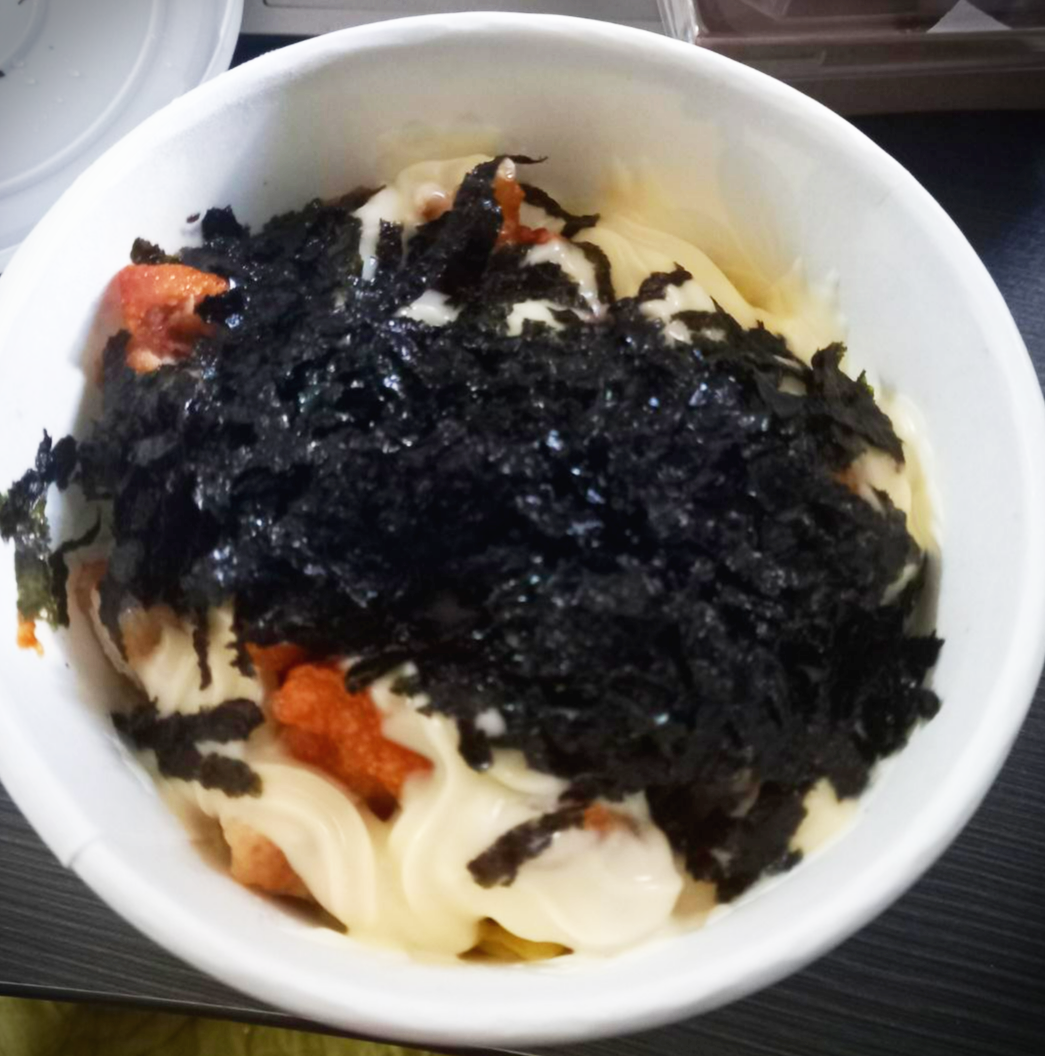 김가루가 듬뿍 올려져 있어 내용물이 잘 안 보이지만 맛있는 조각낸 치킨과